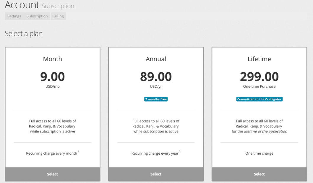 PRICING TABLES